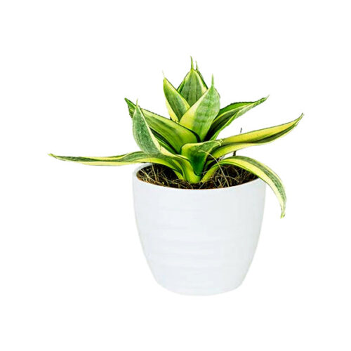 The Snake Plant Mini (Sansevieria) is a compact, hardy air-purifying plant with upright sword-shaped leaves. Perfect for desks, shelves, and bedrooms, it thrives in low light with minimal care.