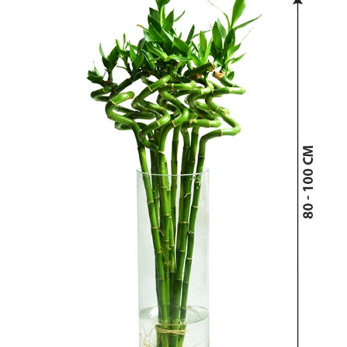 The Lucky Bamboo (Dracaena sanderiana) in a glass vase is a symbol of prosperity and harmony. Easy to grow in water and low-maintenance, it makes a stylish addition to homes or offices and a meaningful gift for any occasion.