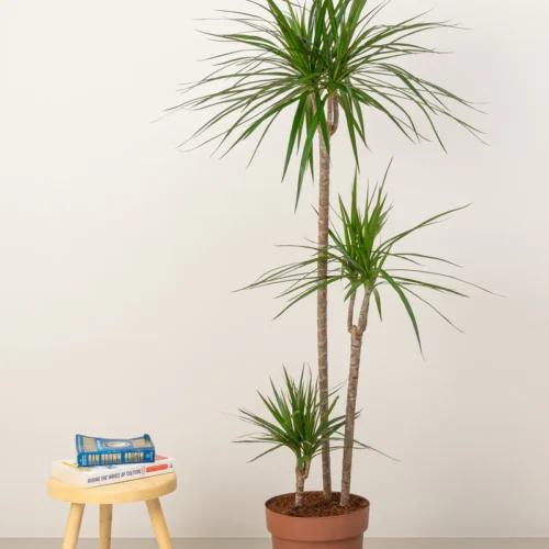 A compact, evergreen shrub with long, narrow leaves and a rosette of foliage at the top.