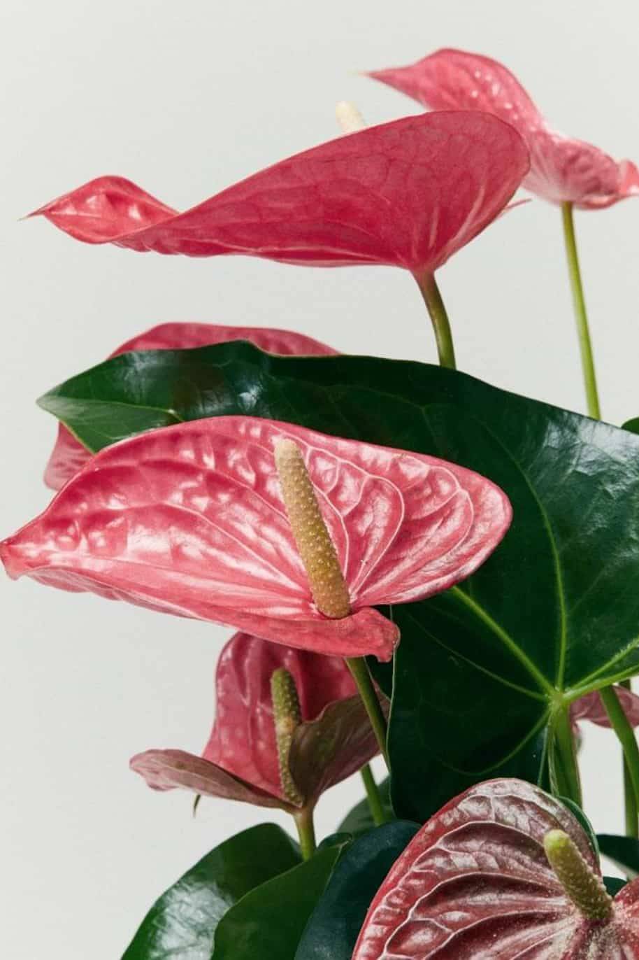 The Anthurium genus contains hundreds of tropical plant species, often admired as houseplants for their bright, nearly year-round flowers. Anthurium is native to the tropical rain forests of Central and South America.The Anthurium is characterized by its shiny dark foliage with its heart shaped flowers available in reds, whites and pink variations.
