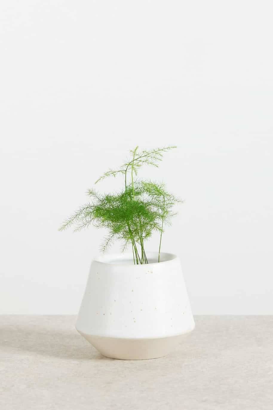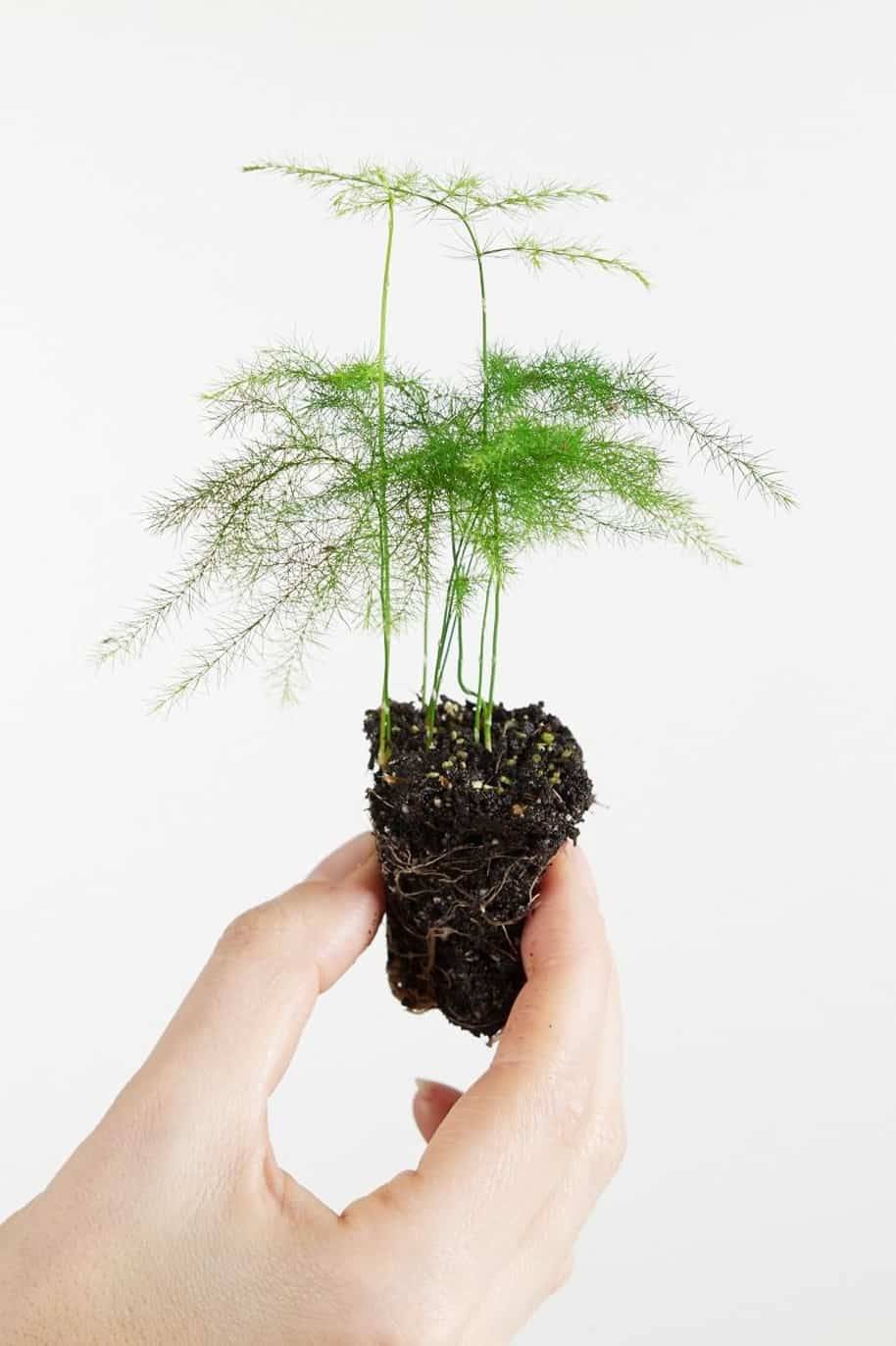 The Asparagus Setaceus Plumosus or Asperagus Fern is one of our most adorable baby plants, resembling a mix of an asparagus plant and a fern. With her soft feathery appearance she is a fresh appearance in, for example, the bathroom or kitchen, and as she loves humidity she’s the perfect plant for near the shower! She lives very happily under a bell jar or in a terrarium.