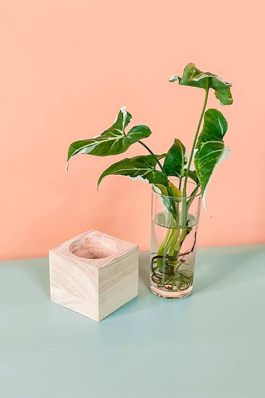 Comes in wooden base and cylindrical glass vase